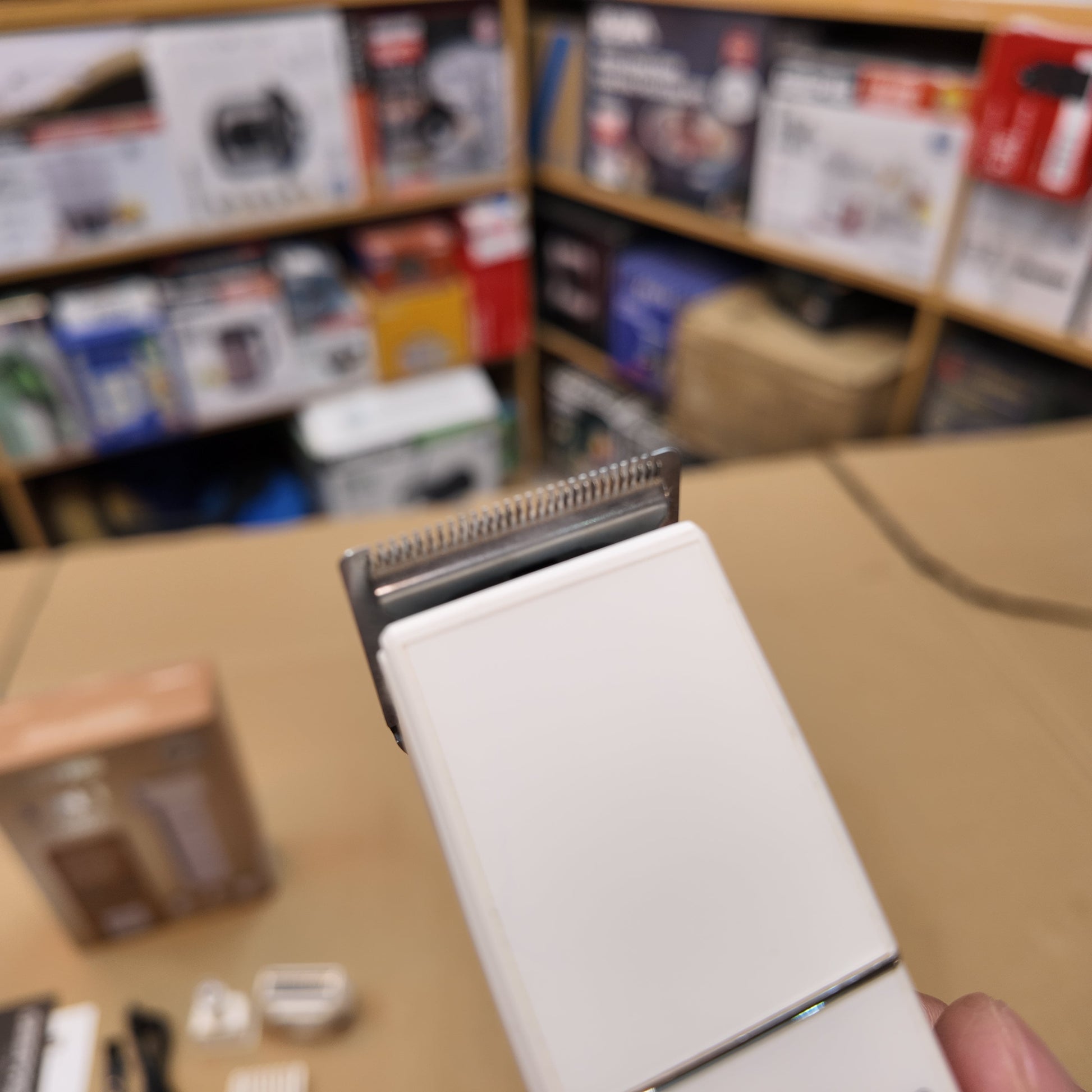 - Nose hair trimmer, foil shaver included.
